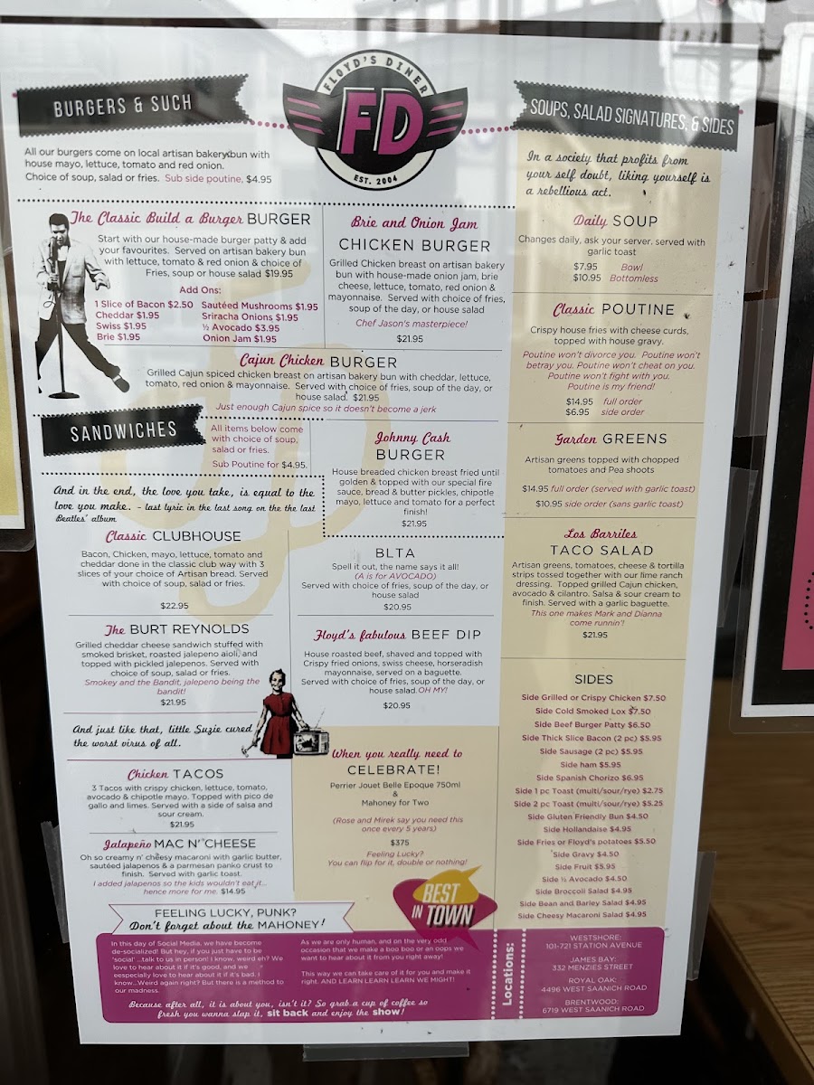 Welcome to Floyd's Diner James Bay, a quintessential dining experience located at 332 Menzies St, Victoria. This lively spot is renowned for its vibrant atmosphere and delectable menu tailored to satisfy all appetites.